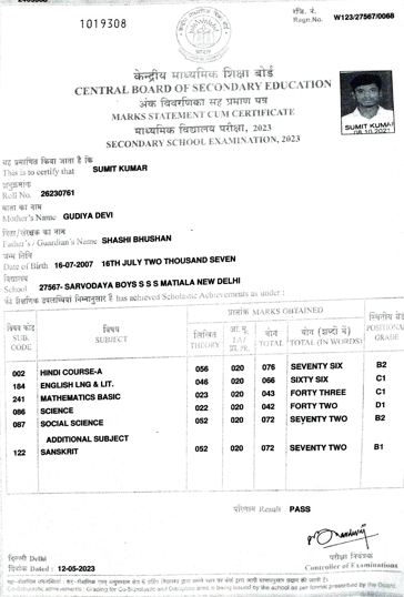| Exam | Full Marks | Pass Marks | Marks Obtained |
