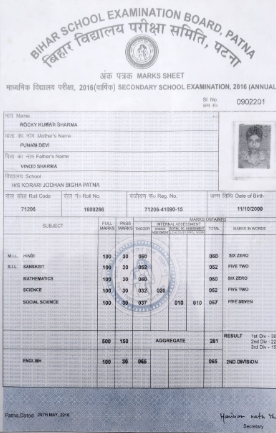 | Exam | Full Marks | Pass Marks | Marks Obtained |