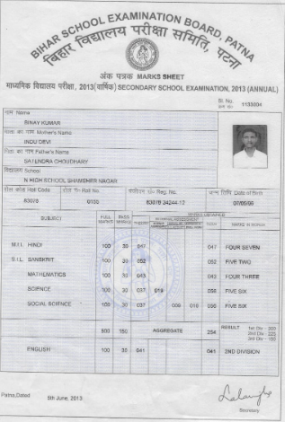 | Exam | Full Marks | Pass Marks | Marks Obtained |