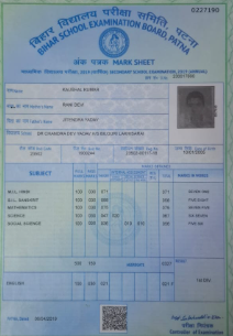 | Exam | Full Marks | Pass Marks | Marks Obtained |