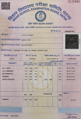 | Exam | Full Marks | Pass Marks | Marks Obtained |