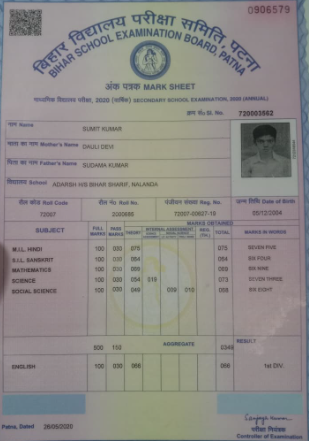 | Exam | Full Marks | Pass Marks | Marks Obtained |