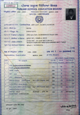 | Exam | Full Marks | Pass Marks | Marks Obtained |
