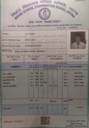 | Exam | Full Marks | Pass Marks | Marks Obtained |