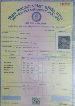 | Exam | Full Marks | Pass Marks | Marks Obtained |