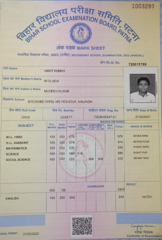 | Exam | Full Marks | Pass Marks | Marks Obtained |