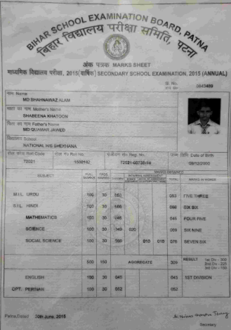 | Exam | Full Marks | Pass Marks | Marks Obtained |
