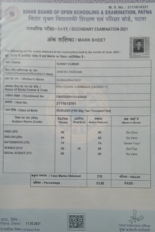 | Exam | Full Marks | Pass Marks | Marks Obtained |