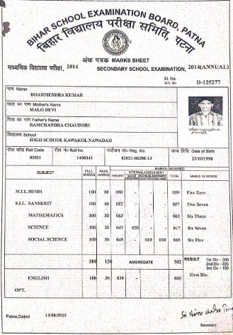 | Exam | Full Marks | Pass Marks | Marks Obtained |