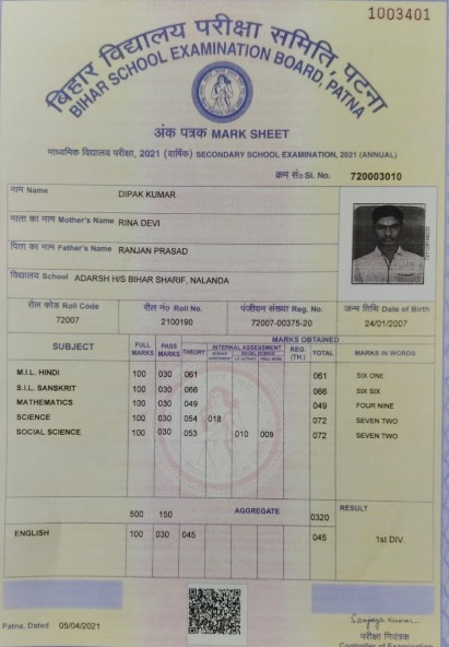 | Exam | Full Marks | Pass Marks | Marks Obtained |
