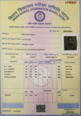| Exam | Full Marks | Pass Marks | Marks Obtained |