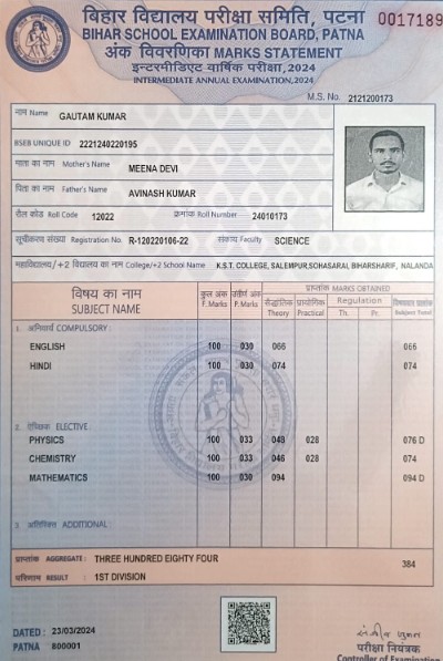| Exam | Full Marks | Pass Marks | Marks Obtained |