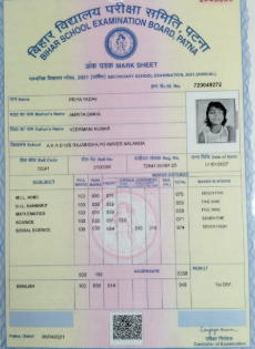 | Exam | Full Marks | Pass Marks | Marks Obtained |