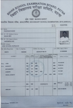 | Exam | Full Marks | Pass Marks | Marks Obtained |