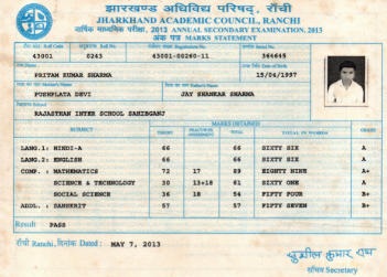 | Exam | Full Marks | Pass Marks | Marks Obtained |