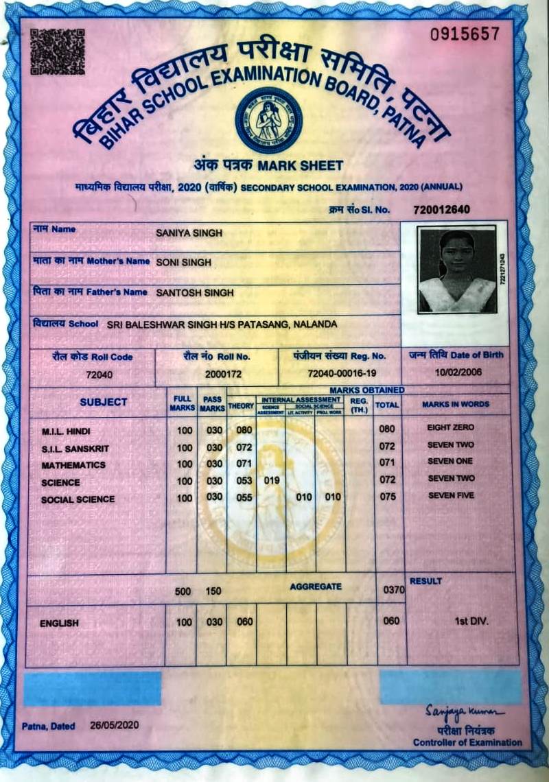 | Exam | Full Marks | Pass Marks | Marks Obtained |
