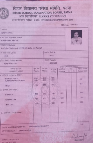 | Exam | Full Marks | Pass Marks | Marks Obtained |