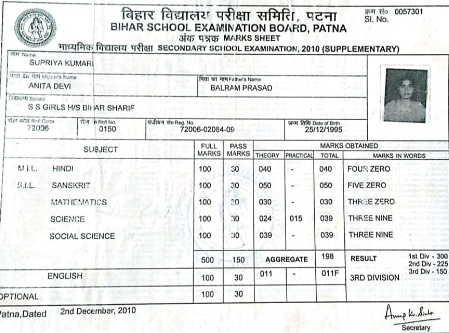 | Exam | Full Marks | Pass Marks | Marks Obtained |