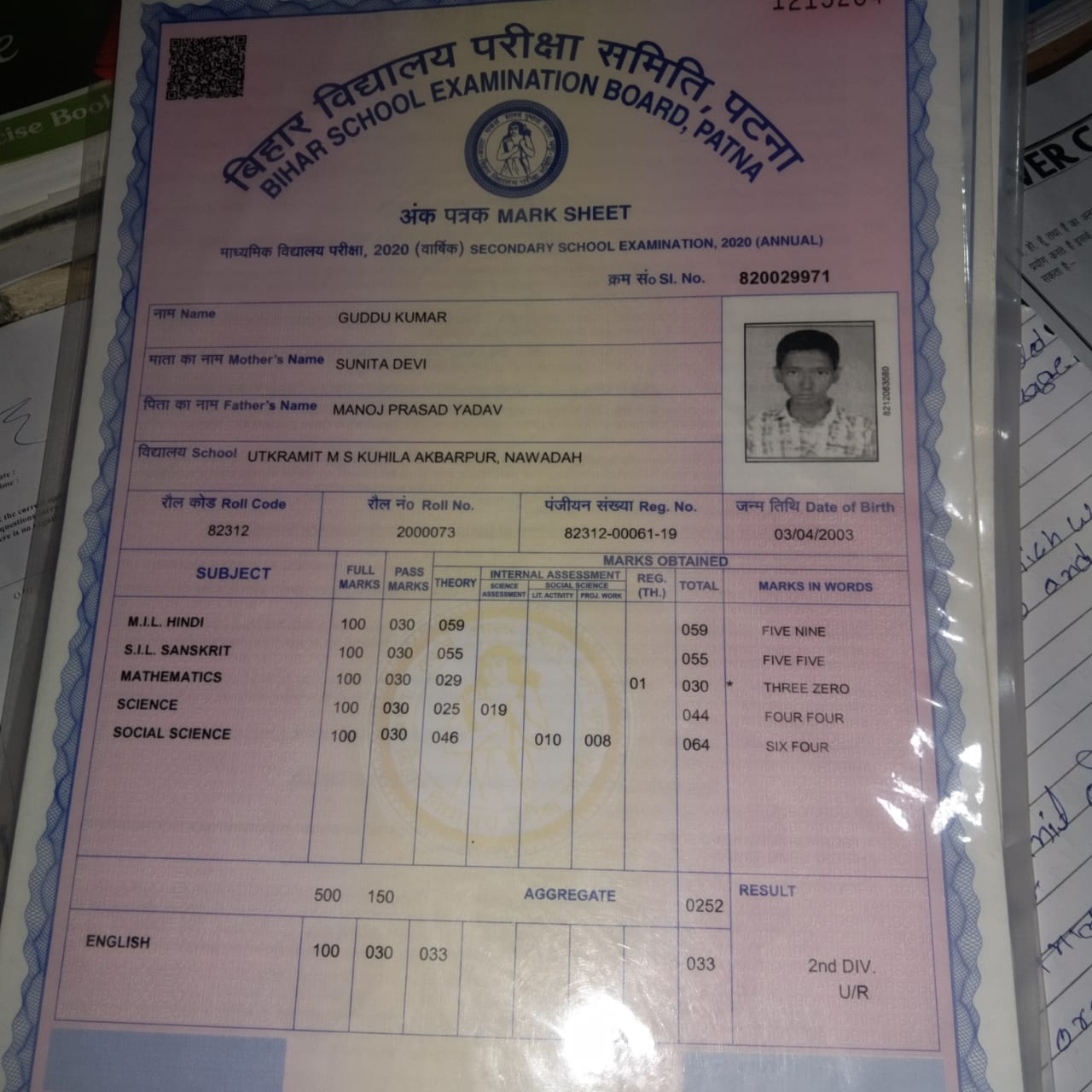 | Exam | Full Marks | Pass Marks | Marks Obtained |