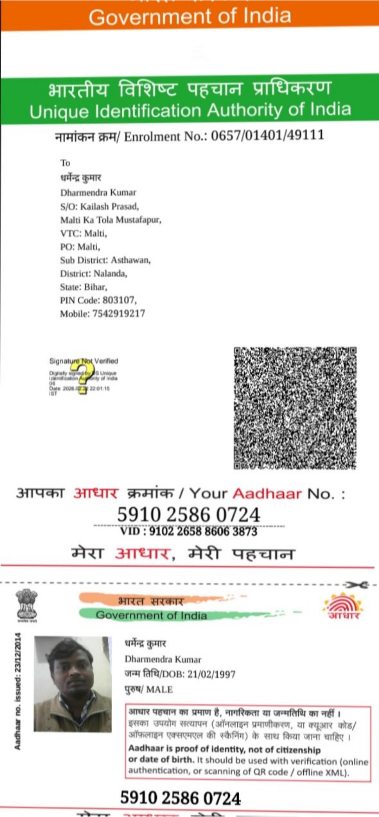 | : | Dekulighat, Khandakpar, BIHAR SHARIF-803101, Nalanda | |