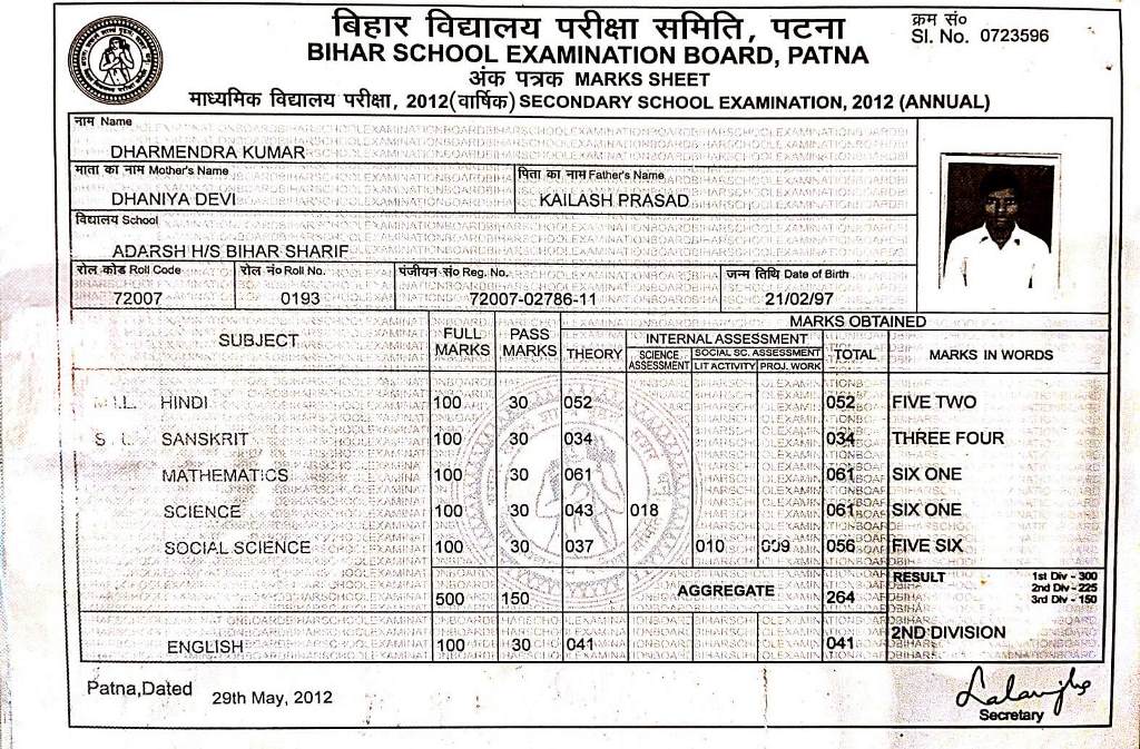 | Exam | Full Marks | Pass Marks | Marks Obtained |