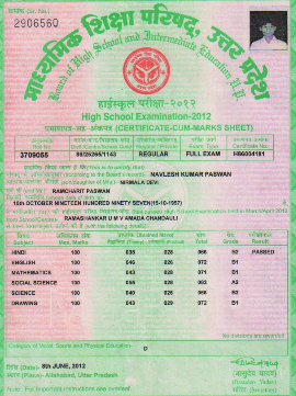 | Exam | Full Marks | Pass Marks | Marks Obtained |