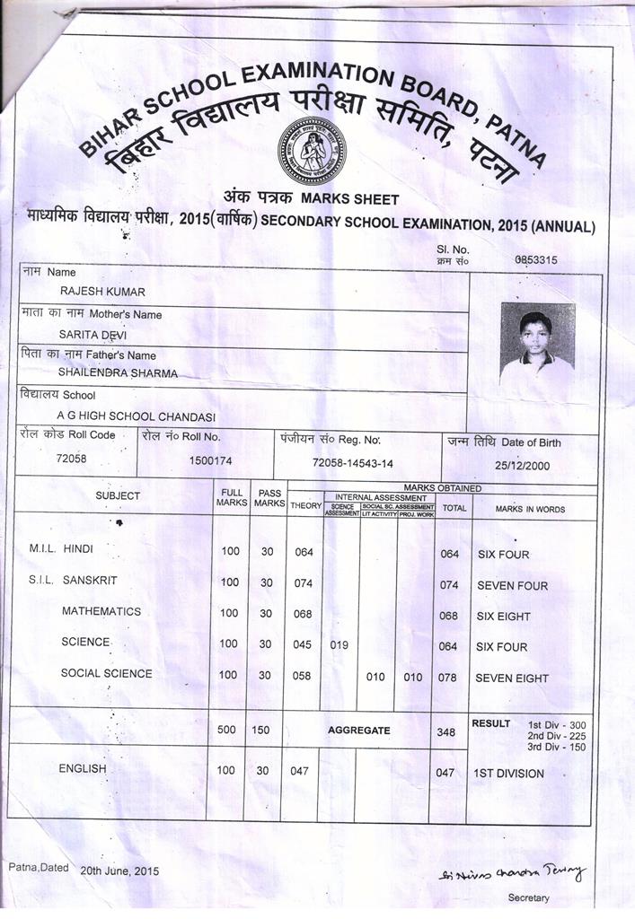 | Exam | Full Marks | Pass Marks | Marks Obtained |
