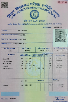 | Exam | Full Marks | Pass Marks | Marks Obtained |