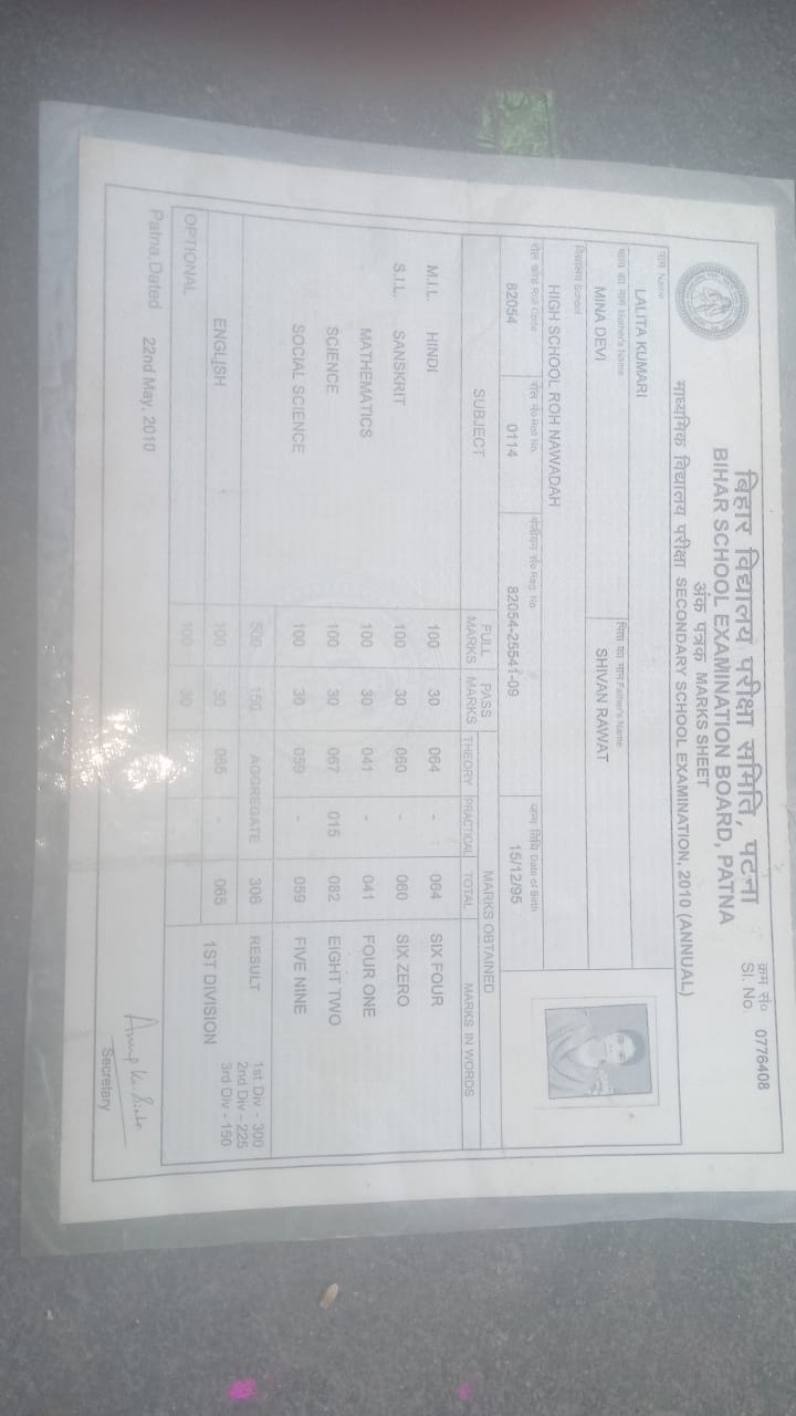 | Exam | Full Marks | Pass Marks | Marks Obtained |