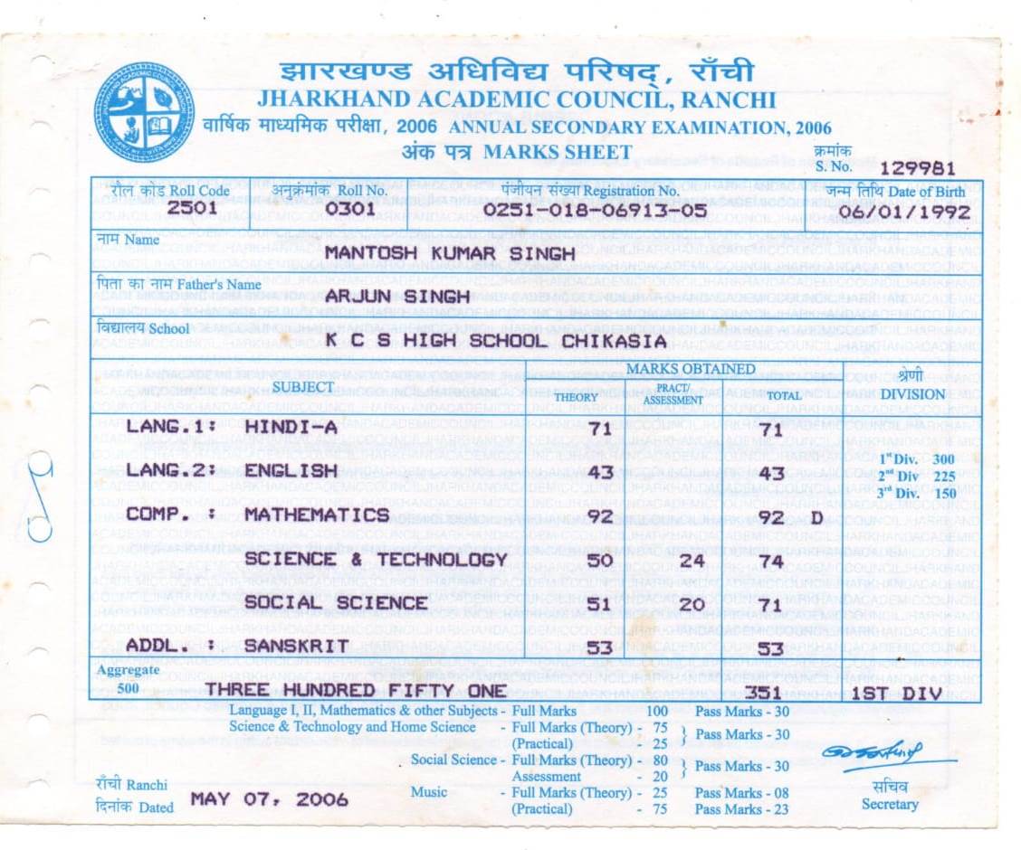 | Exam | Full Marks | Pass Marks | Marks Obtained |