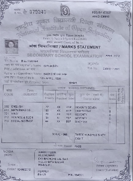 | Exam | Full Marks | Pass Marks | Marks Obtained |