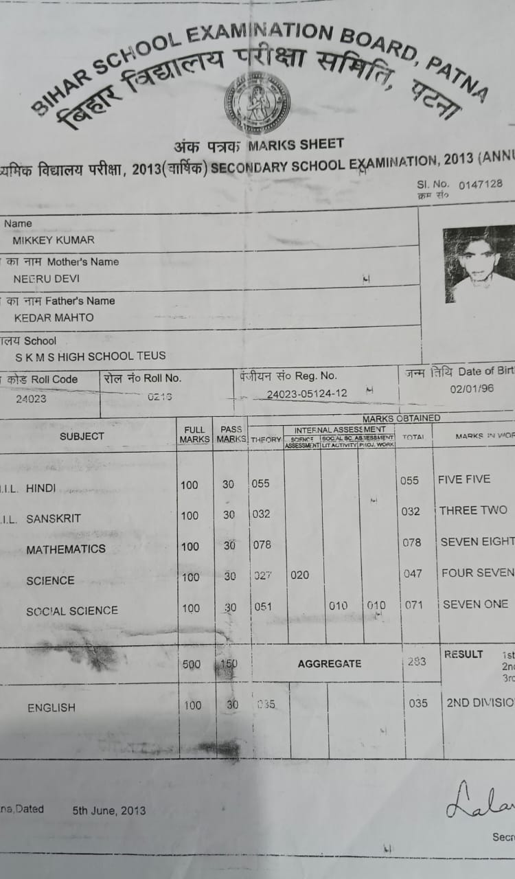 | Exam | Full Marks | Pass Marks | Marks Obtained |