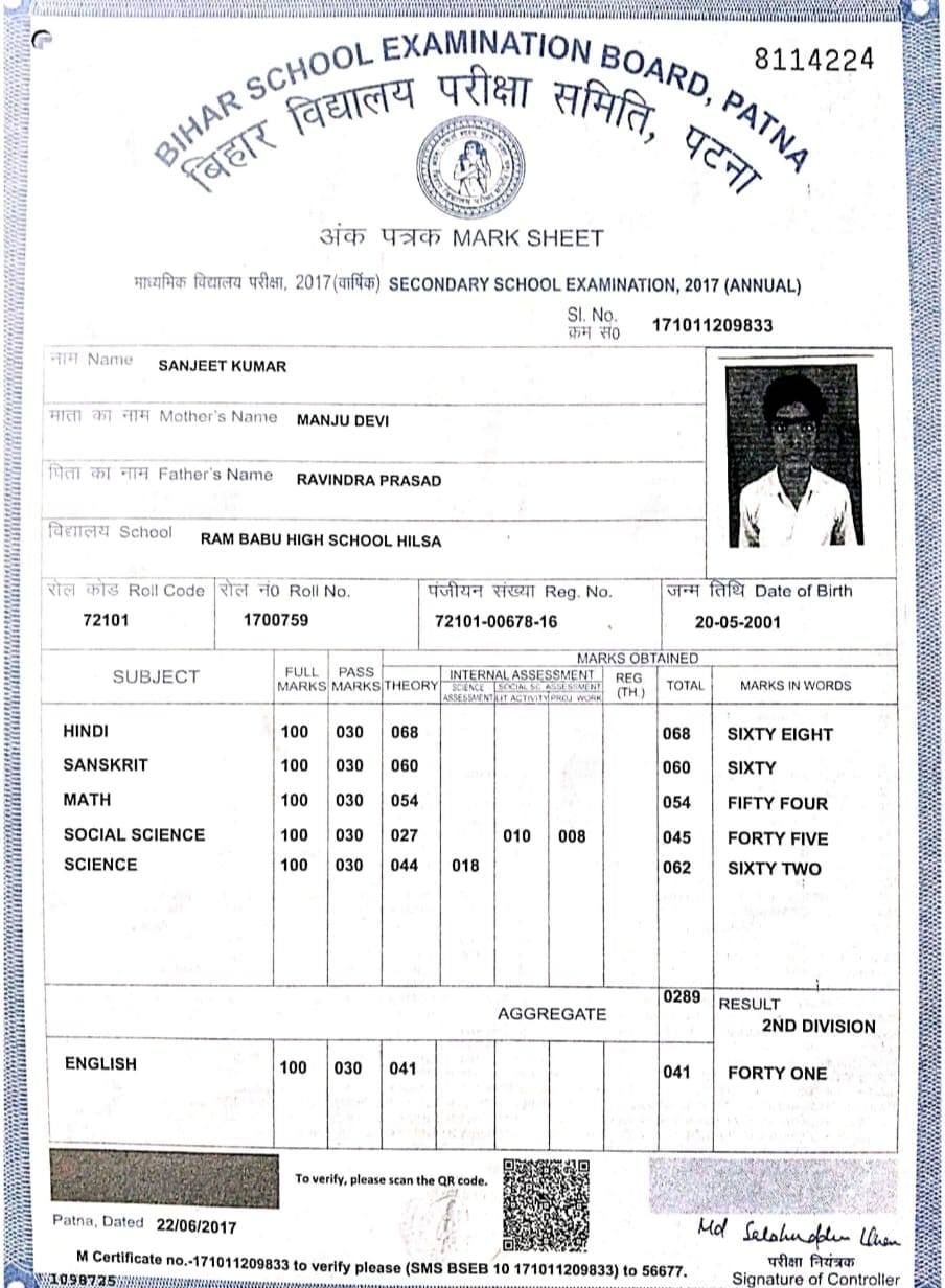 | : | Non Matric | |