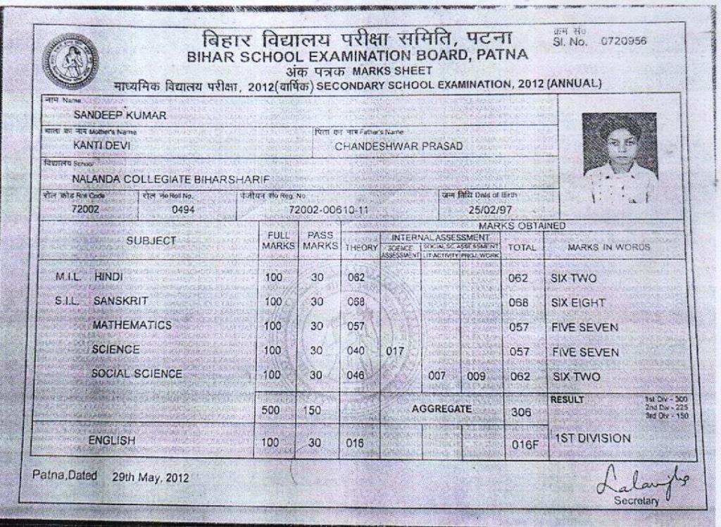 | Exam | Full Marks | Pass Marks | Marks Obtained |