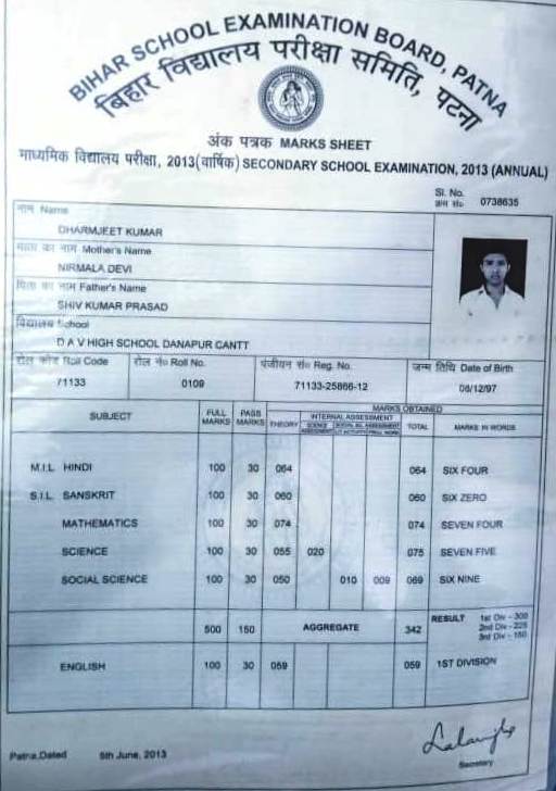 | Exam | Full Marks | Pass Marks | Marks Obtained |