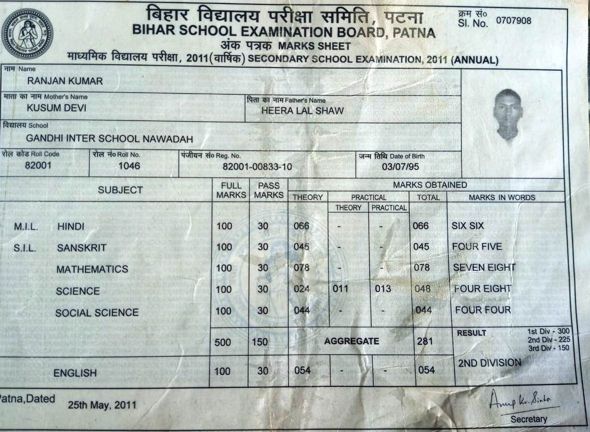 | Exam | Full Marks | Pass Marks | Marks Obtained |