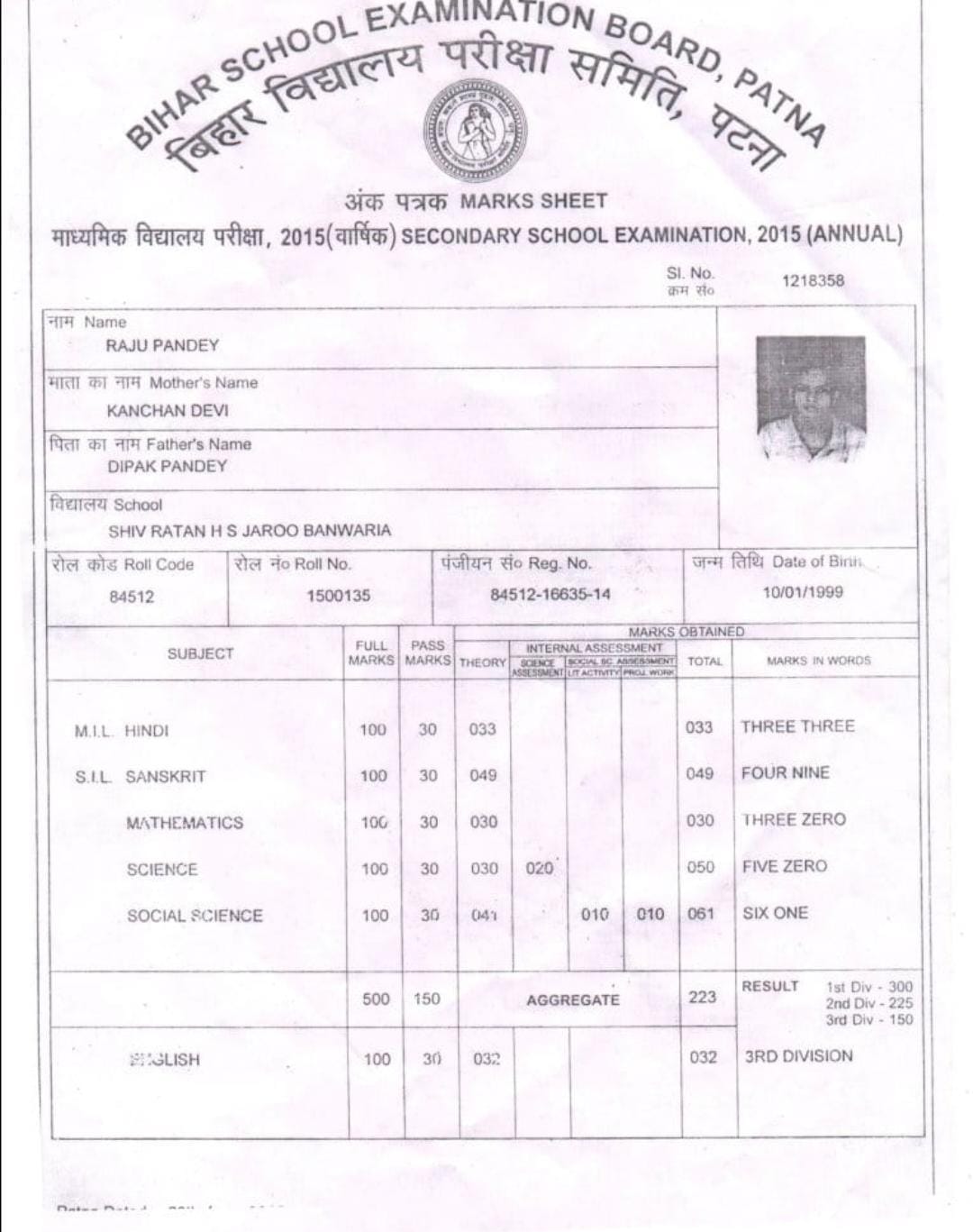 | Exam | Full Marks | Pass Marks | Marks Obtained |