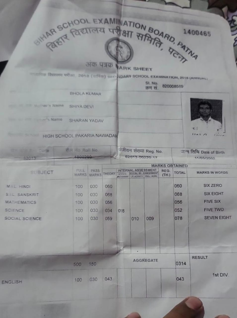 | Exam | Full Marks | Pass Marks | Marks Obtained |