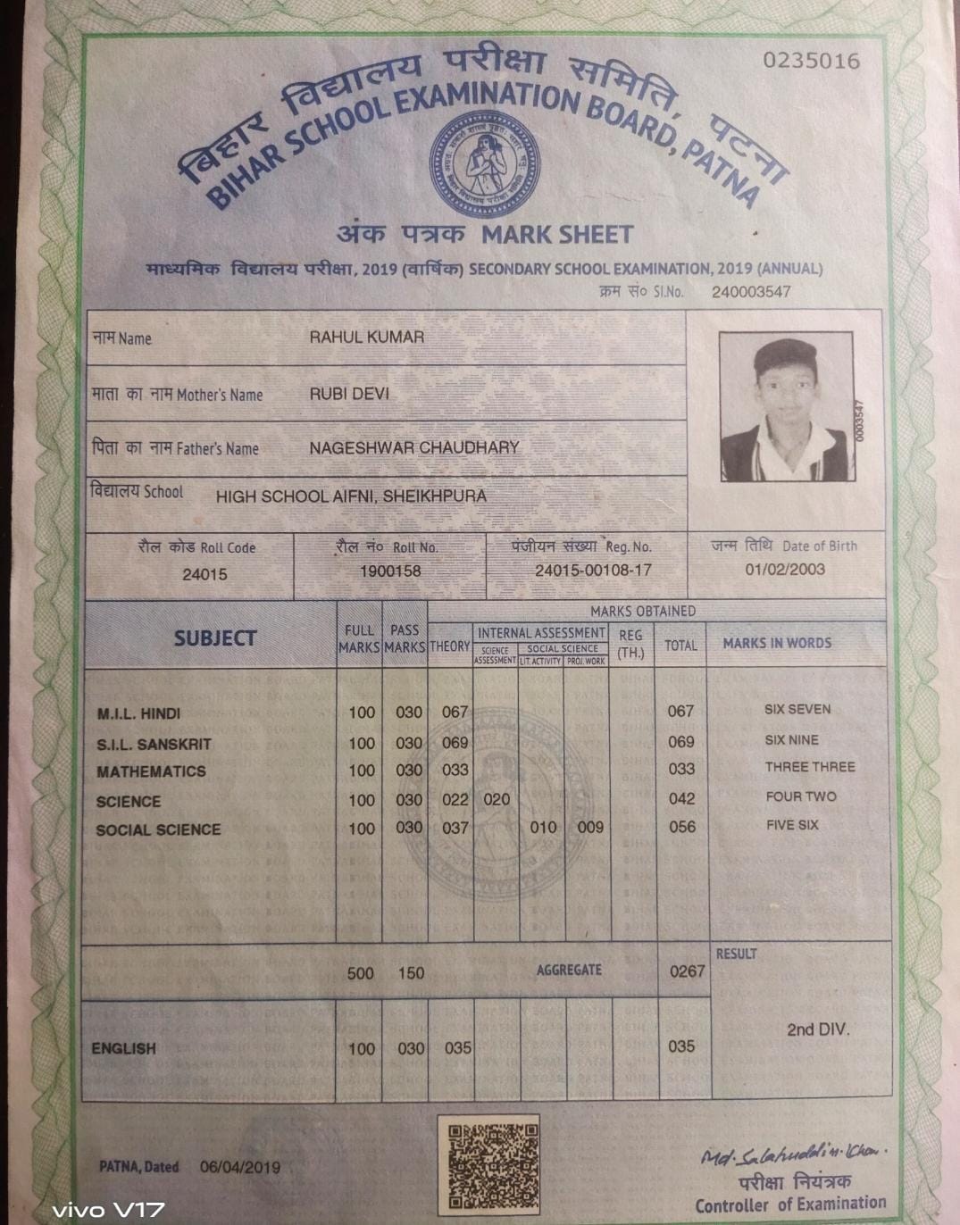| Exam | Full Marks | Pass Marks | Marks Obtained |