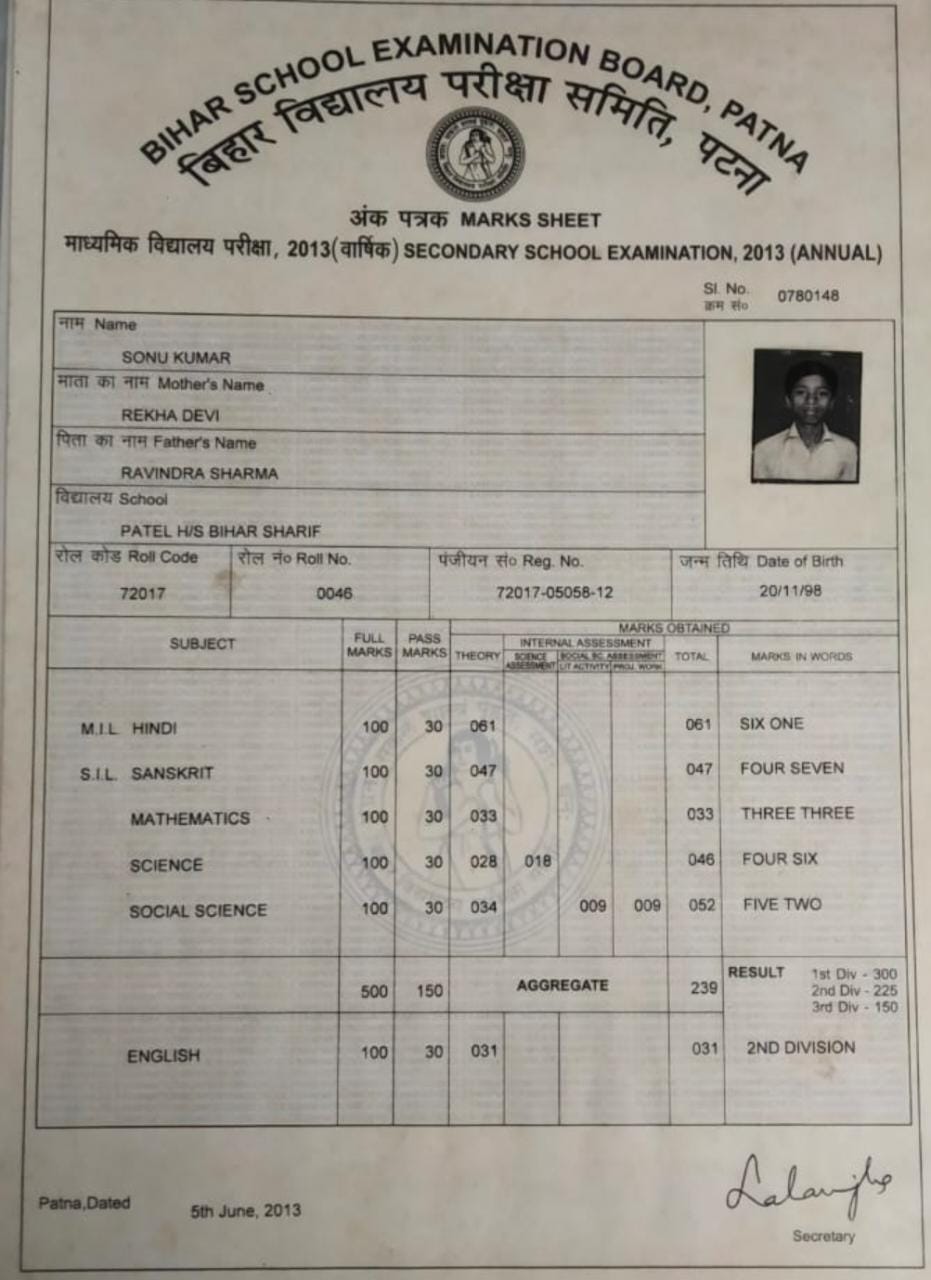 | Exam | Full Marks | Pass Marks | Marks Obtained |