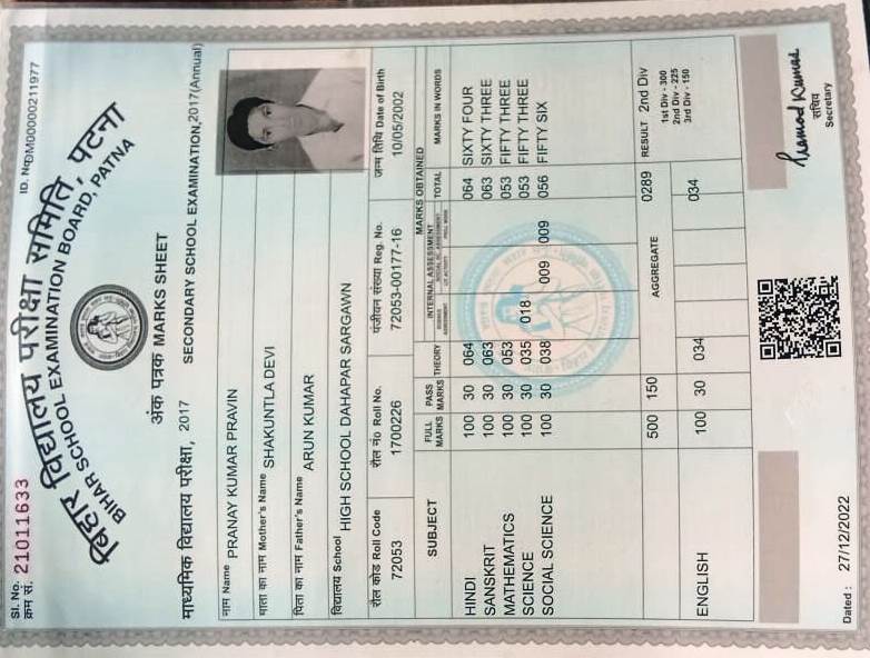 | Exam | Full Marks | Pass Marks | Marks Obtained |