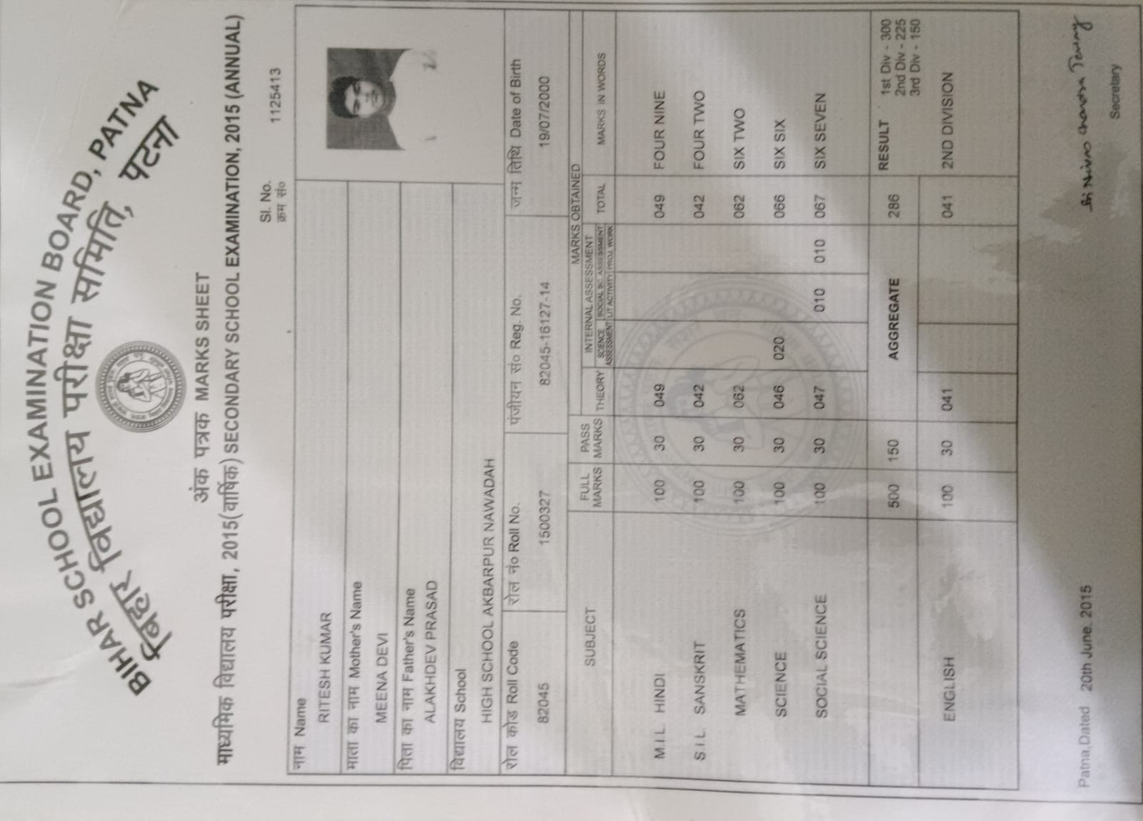 | : | Matric | |