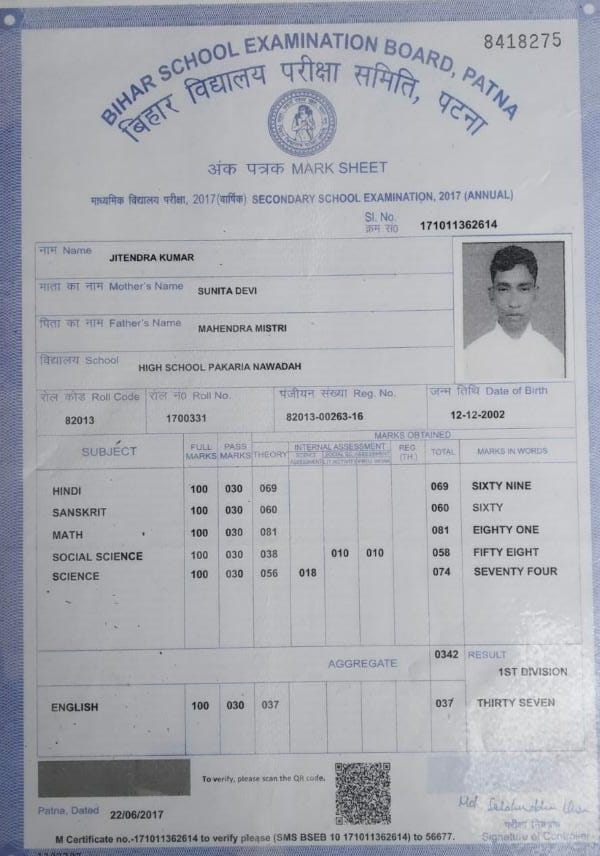 | Exam | Full Marks | Pass Marks | Marks Obtained |