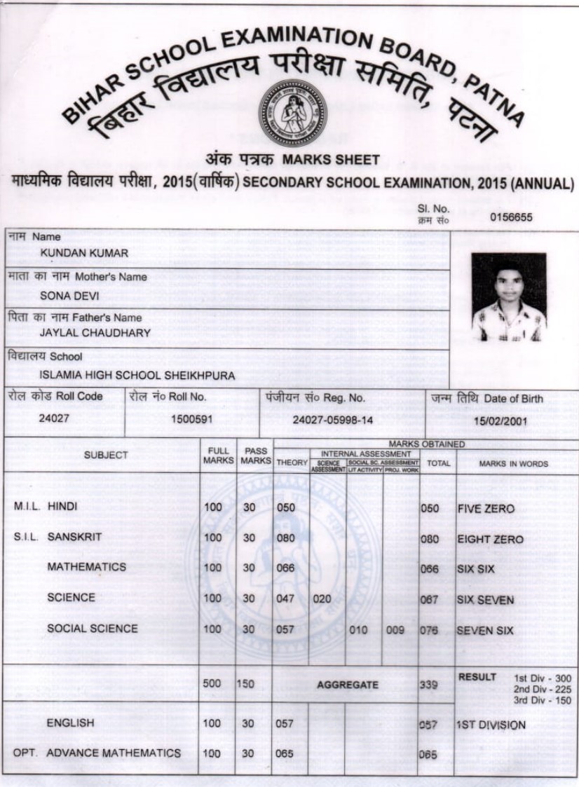 | Exam | Full Marks | Pass Marks | Marks Obtained |
