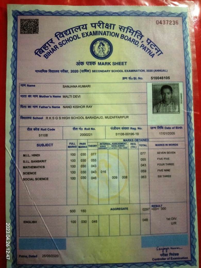 | Exam | Full Marks | Pass Marks | Marks Obtained |