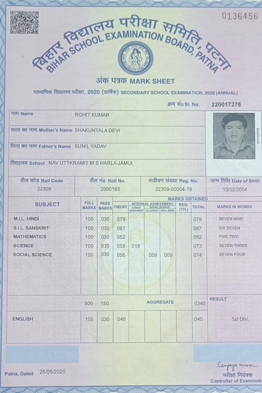 | Exam | Full Marks | Pass Marks | Marks Obtained |