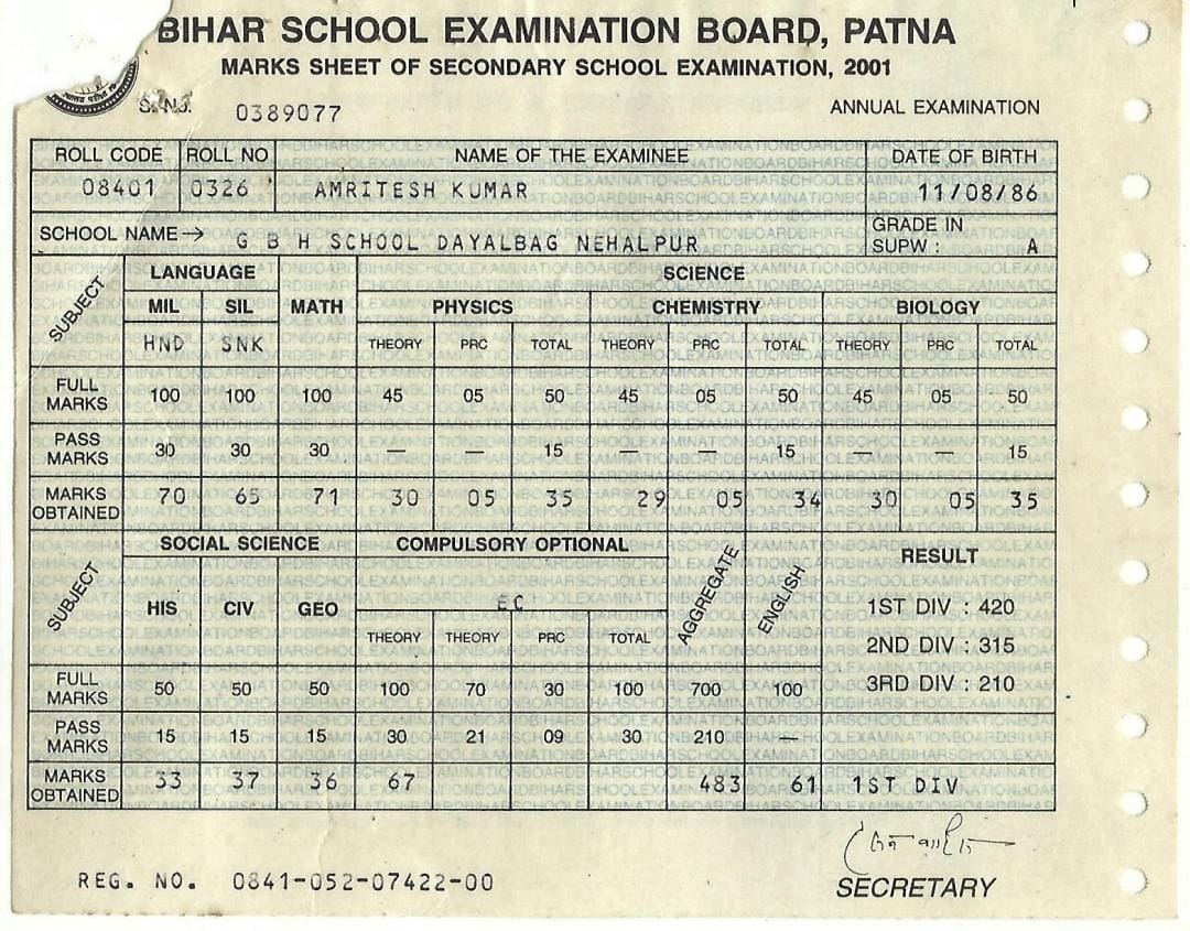 | Exam | Full Marks | Pass Marks | Marks Obtained |