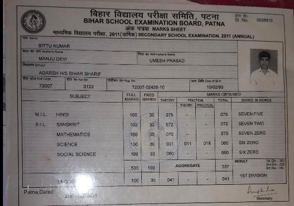 | Exam | Full Marks | Pass Marks | Marks Obtained |