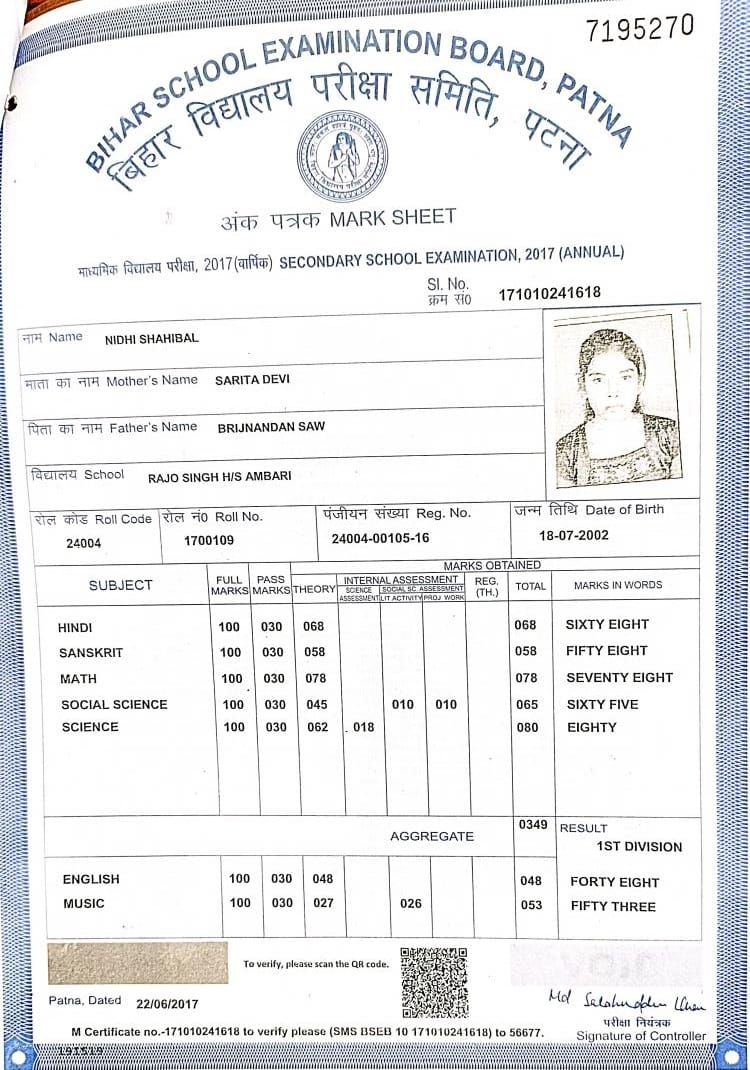 | Exam | Full Marks | Pass Marks | Marks Obtained |