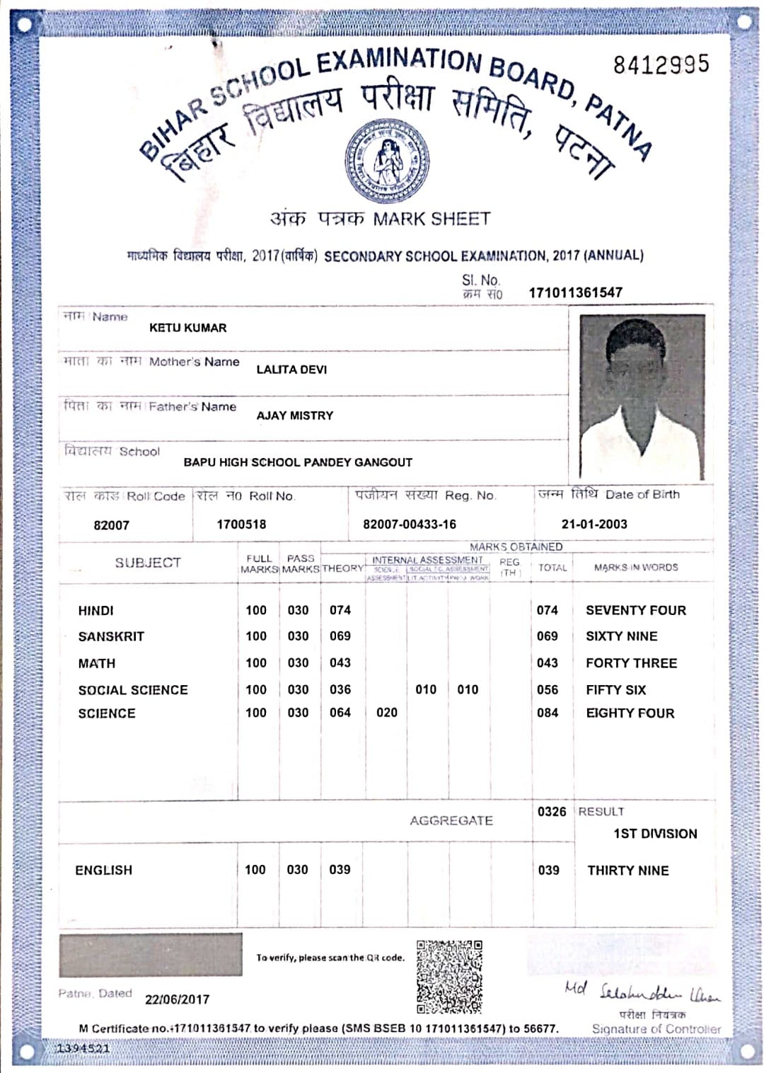 | Exam | Full Marks | Pass Marks | Marks Obtained |